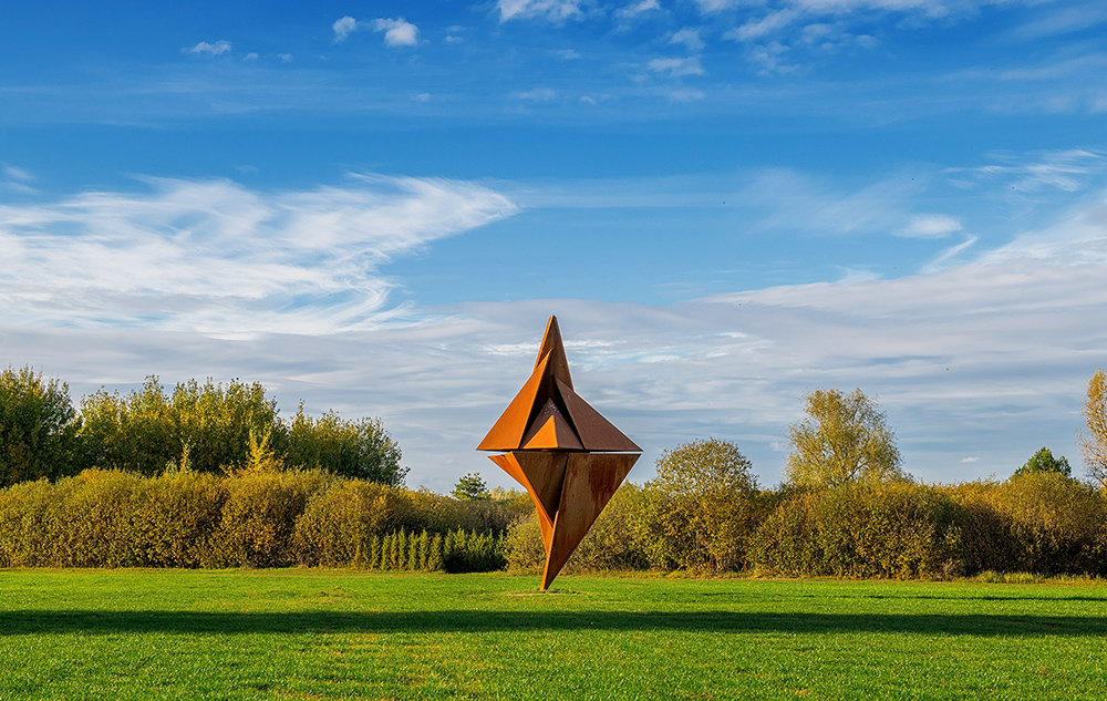 ZOLOTAR (Oleksii Zolotar) combines experiments in abstract forms with clear articulations of his ideological positions and conceptual narratives. The Wind Rose literally combines the dominant wind directions over long periods of time. Embodied in the art object, it refers to various cardinal directions and perspectives on their entire scope as seen from various points. It invites strategic reflections on historical trajectories and the dynamics of the current cultural, social or political developments.